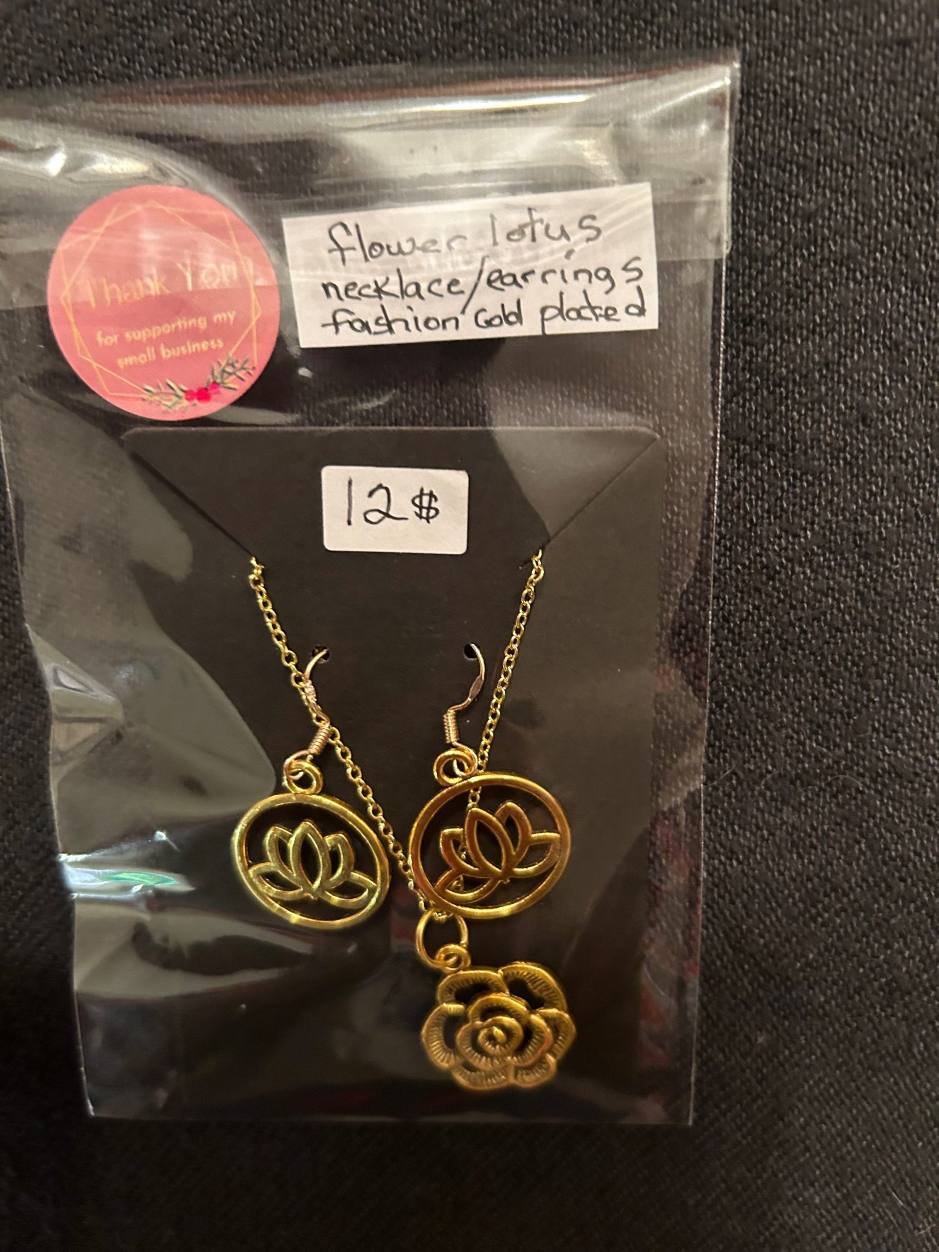 Be the first to review “Flower lotus set gold plated necklace and ear rings”