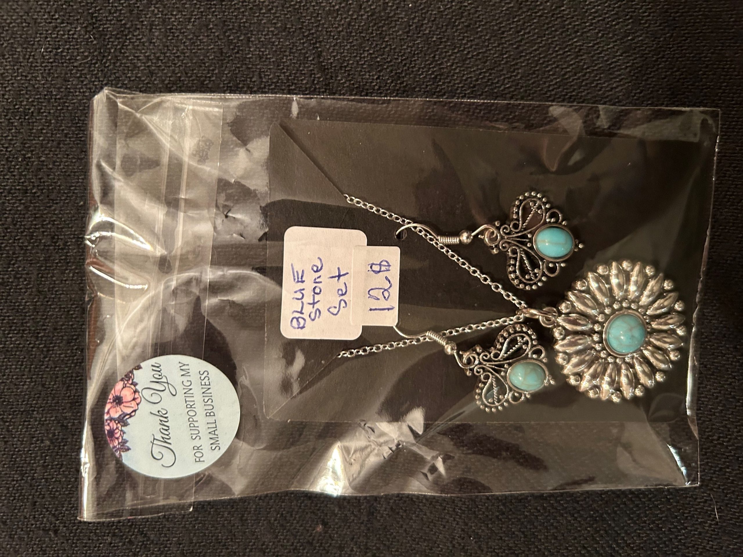 Be the first to review “Turquoise blue ear rings and silver necklace”