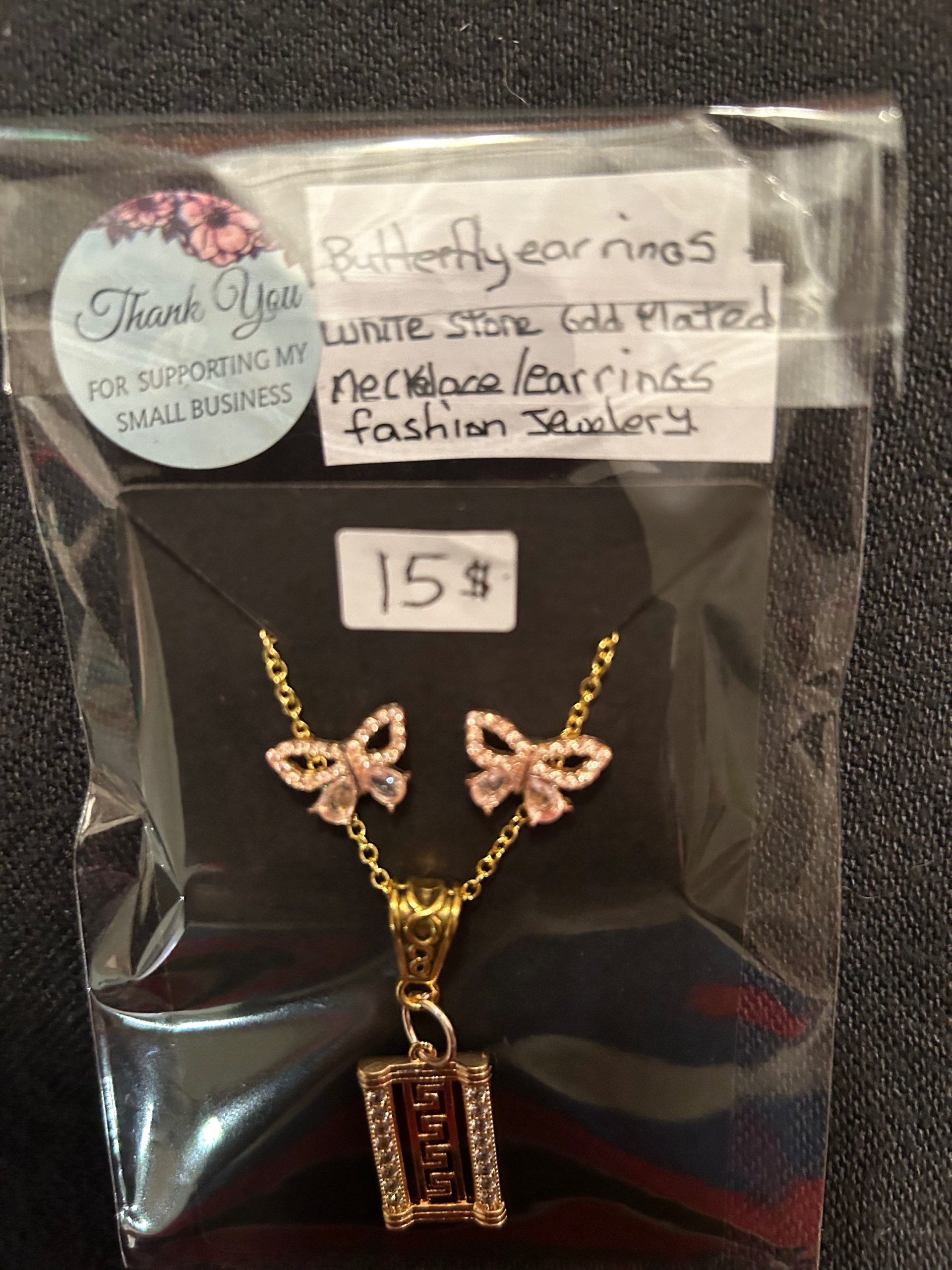 Be the first to review “White stone butterfly necklace and necklace gold plated”